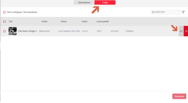 - Sobald der Download abgeschlossen ist, klicken Sie auf „Fertig“, um auf Ihre Songs zuzugreifen. Die Dateien sind im entsprechenden Ordner gespeichert.