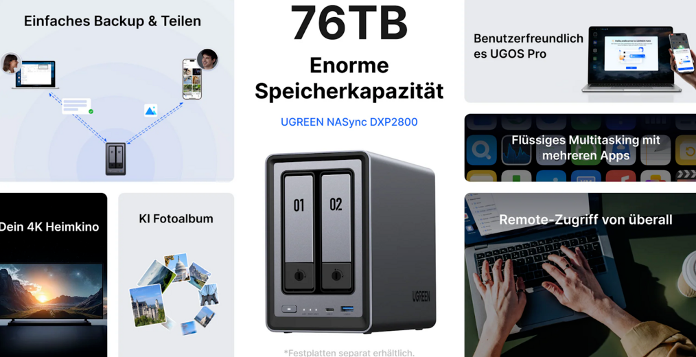 Der UGREEN DXP2800 passt dabei besonders gut zu privaten Fotografen, die eine kompakte, moderne und zukunftssichere Lösung suchen. Mit bis zu 76 TB, 2,5GbE, M.2-Caching, automatischen Backups, Fernzugriff und KI-gestützter Fotoverwaltung bietet er deutlich mehr als eine klassische externe Festplatte. Wer nicht nur speichern, sondern sein Fotoarchiv langfristig sauber verwalten und unabhängig von Abo-Modellen bleiben will, findet im UGREEN DXP2800 eine sehr starke Option.